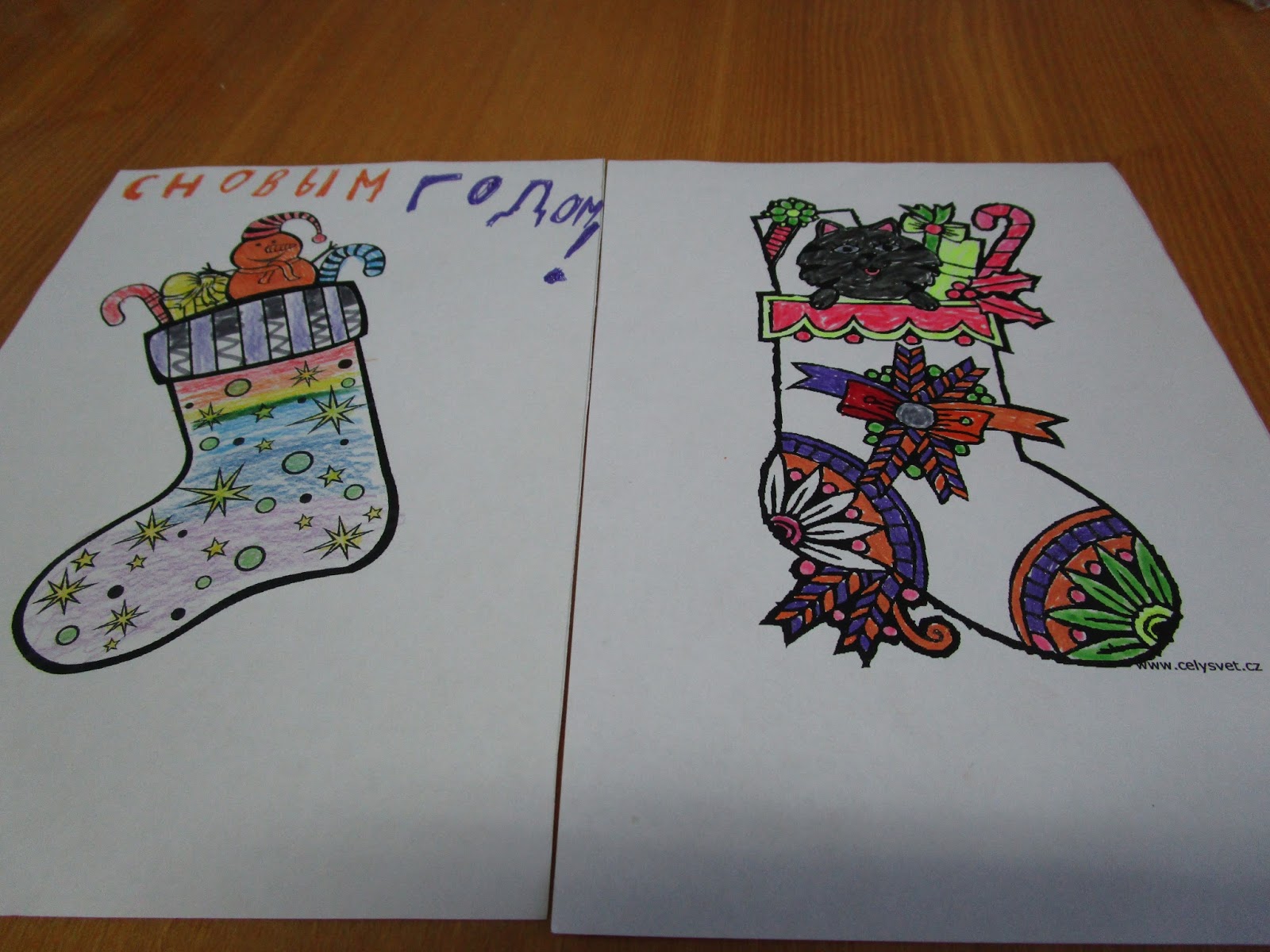 А это уже ребята из группы продленного дня постарались. Такая красота получилась на занятии "История новогоднего носочка".