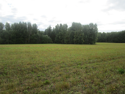 Так как грибы здесь не находились, мы решили поискать счастья с другой стороны дороги. До леса нужно идти через поле. Трава на нем скошена, только кое-где подмигивают желтым глазом запоздалые ромашки, да желтеют островки мышиного горошка.